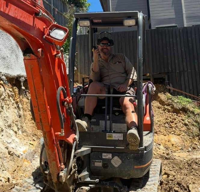 Hamish - Head Landscaper (Cert IV in Landscape construction) & 3rd year Apprentice plumber. Not content with a single trade, on completion of his construction certificate in 2022 Hamish went about applying for his Plumbers license.