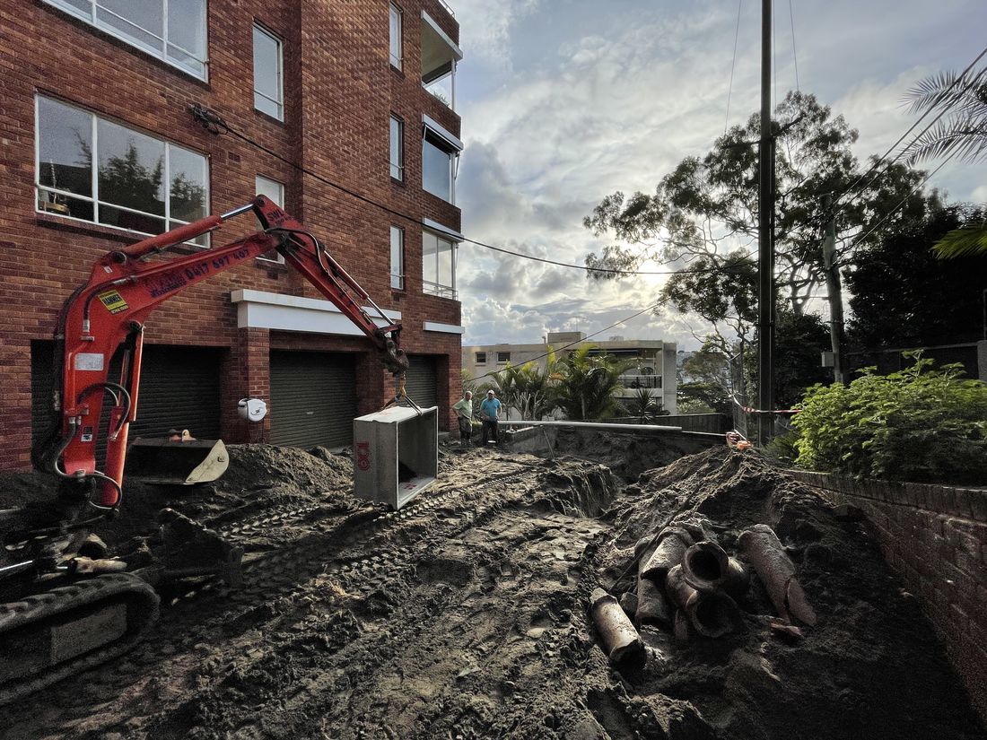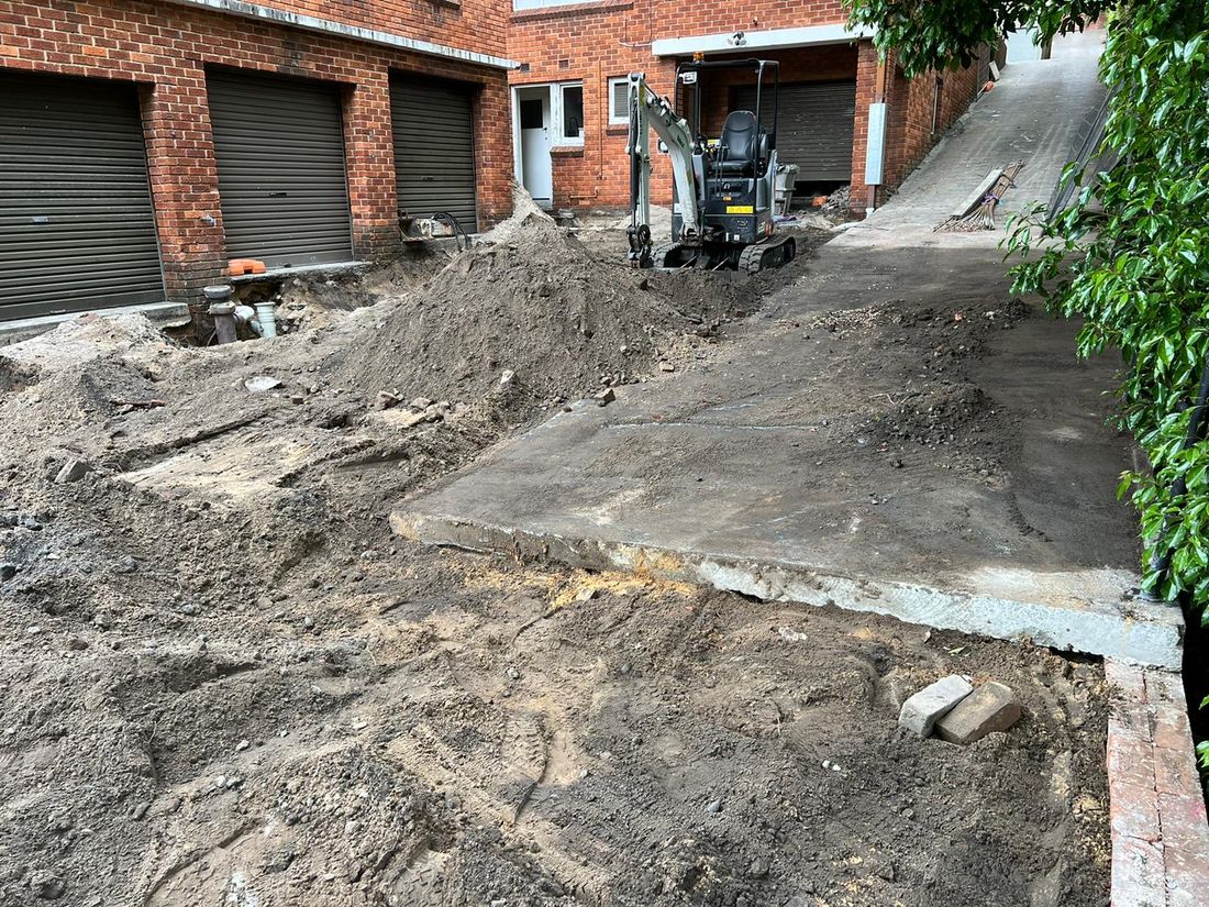 This 12 block unit at Double Bay had to remove all their driveways, paths and stairs to redo all the plumbing (sewer and stormwater) in the whole unit block.