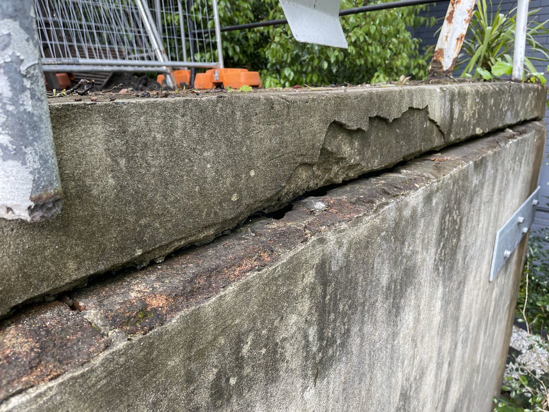 This damaged wall was hanging on by a thread. There was a 6 car carpark on top of this wall that had to be removed and replaced.