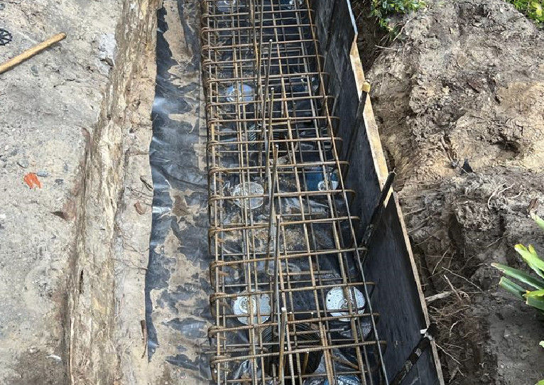 To satisfy the engineers requirements we had to pier into solid rock before placing our steel cages and formwork in.